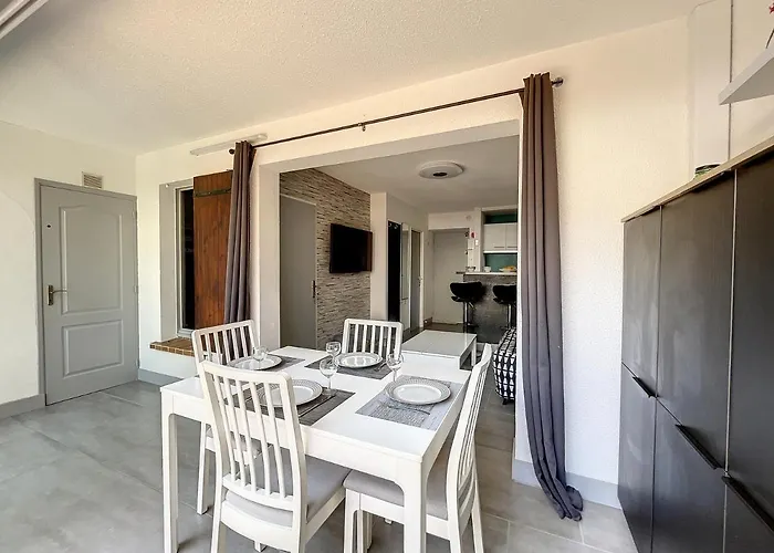 Appartement Renove Tout Confort Avec Piscine Agde offers a private garden and is located a 10-minute drive from the Luna Park. Guests can relax and take in garden views from a terrace of this apartment.